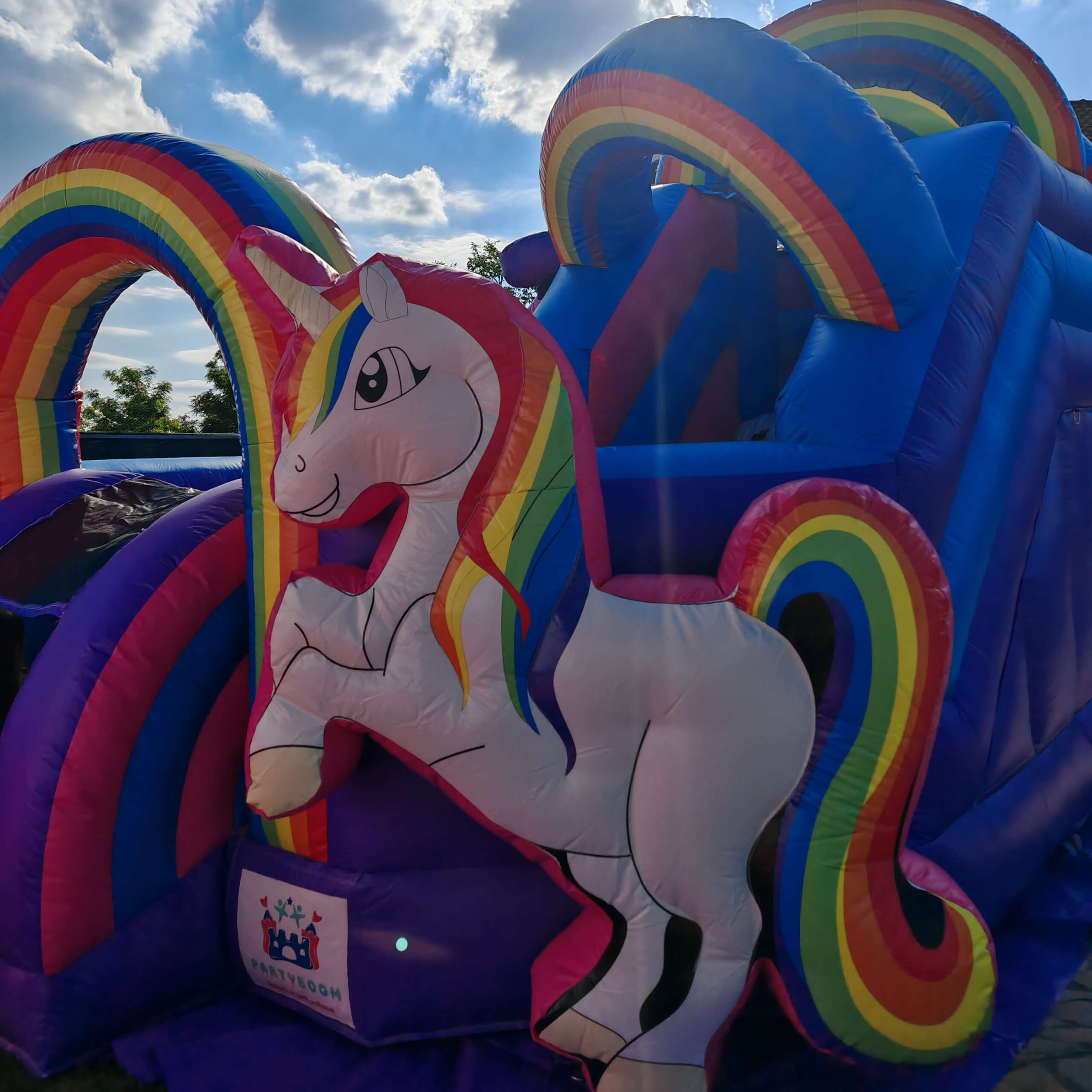Ova igraonica na naduvavanje sa tematikom Jednoroga donosi akciju i avanturu na svaku proslavu. Jednorog je uvek aktuelan i sa svojim dizajnom oduševljava decu i odrasle. Dizajniran sa detaljima omiljene barbike, pruža zabavu i fizičku aktivnost deci, uz mogućnost skakanja, penjanja i igre. Igraonica na naduvavanje je napravljen od visokokvalitetnog materijala, bezbedan za korišćenje i idealan za spoljne i unutrašnje proslave.