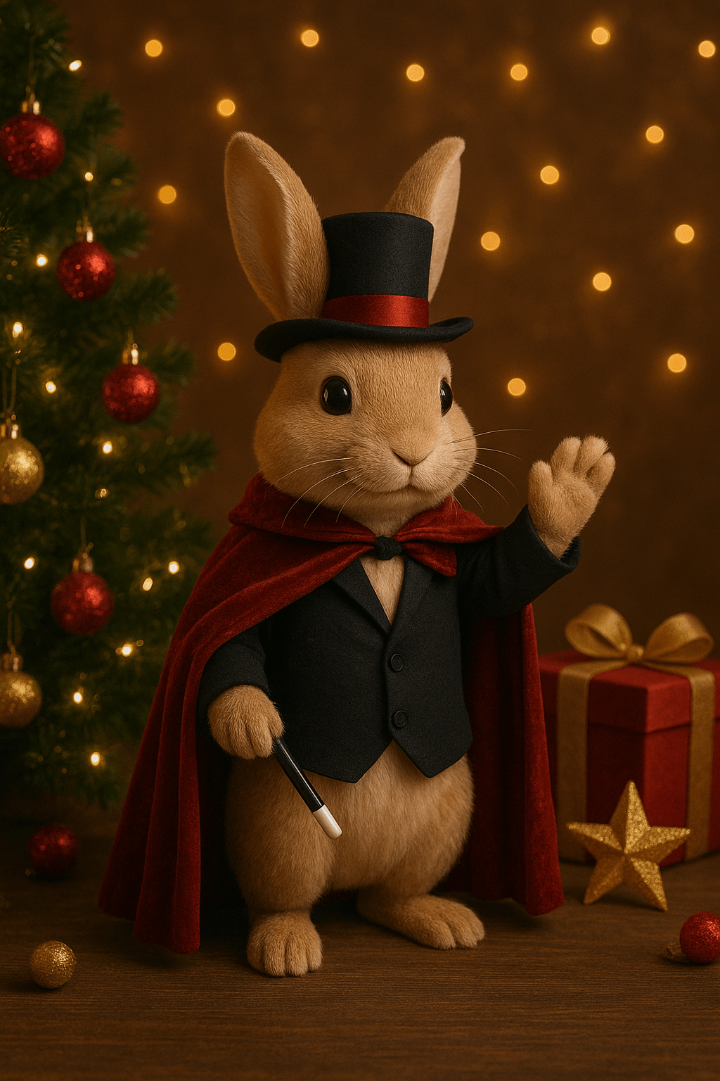 Zakoračite u svet praznične magije! Ova predstava nije samo niz trikova, to je interaktivno putovanje u svet ilizija,smeha i čarolije gde publika aktivno učestvuje u stvaranju magije na bini. Naš profesionalni mađioničar mališane će ostaviti bez daha svojim neverovatnim veštinama. Na samoj završnici pojavljuje se specijalni gost magični Zec. Ovaj mekani,razigrani prijatelj jedva čeka da se druži sa decom. Njegovo pojavljivanje je uvek trenutak čiste radosti i iznenađenja. Mališani će osetiti pravu magiju i upoznati najveselijeg Zeca u gradu.