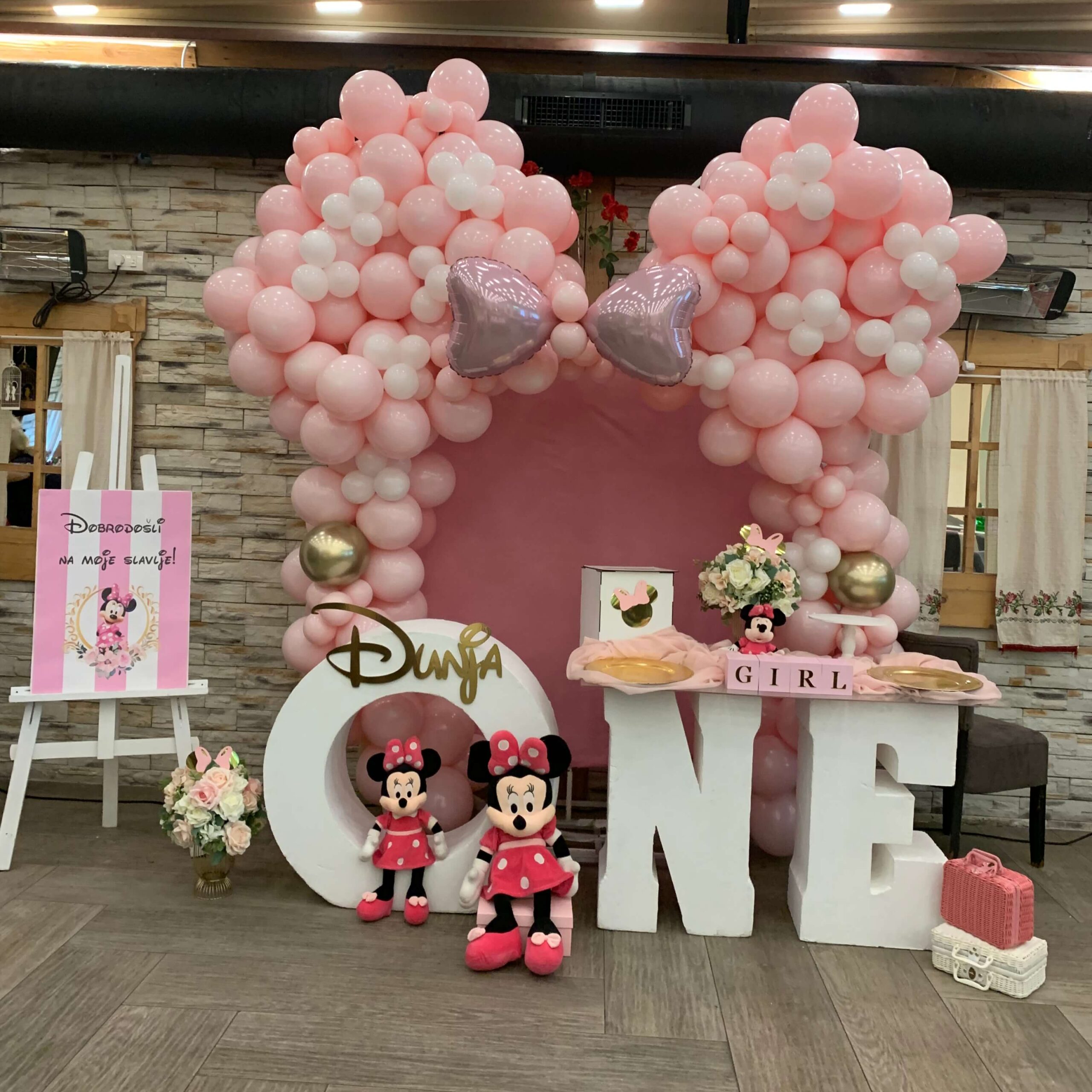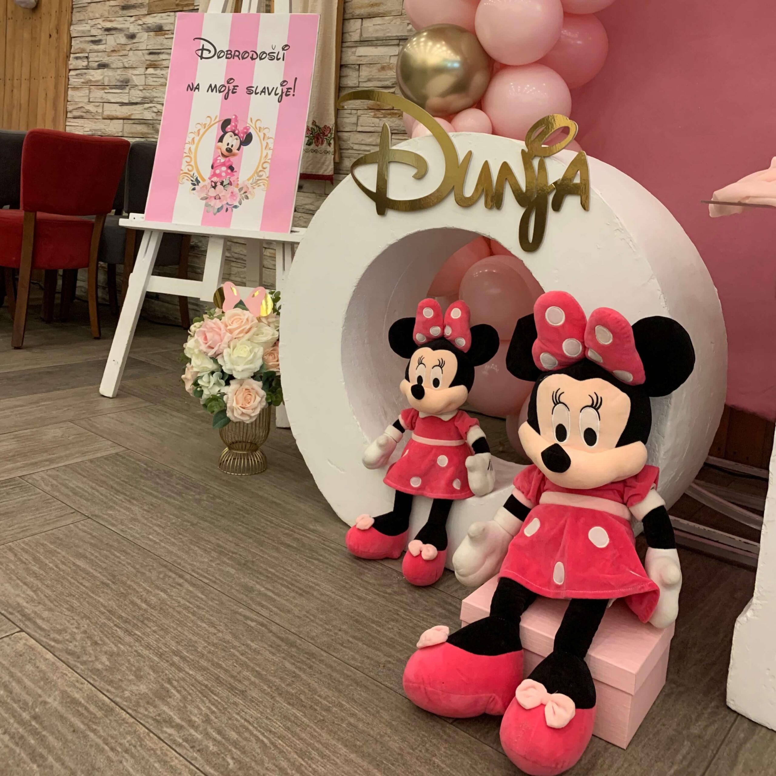 Unesite čaroliju Disney sveta na vašu proslavu uz predivnu Mini dekoraciju za rođendan! Ova tematska postavka uključuje pastelne balone u nijansama roze i bele (ili po vašem izboru), pažljivo izrađene detalje, kao i predivne Mini plišane igračke. Savršena kombinacija boja i elemenata stvara atmosferu iz bajke za svaki dečiji rođendan. Partyboom tim garantuje vrhunsku dekoraciju i pažnju prema detaljima, čineći vašu proslavu nezaboravnom. Rezervišite Mini tematsku dekoraciju za rođendan i priuštite svojim mališanima proslavu iz snova!