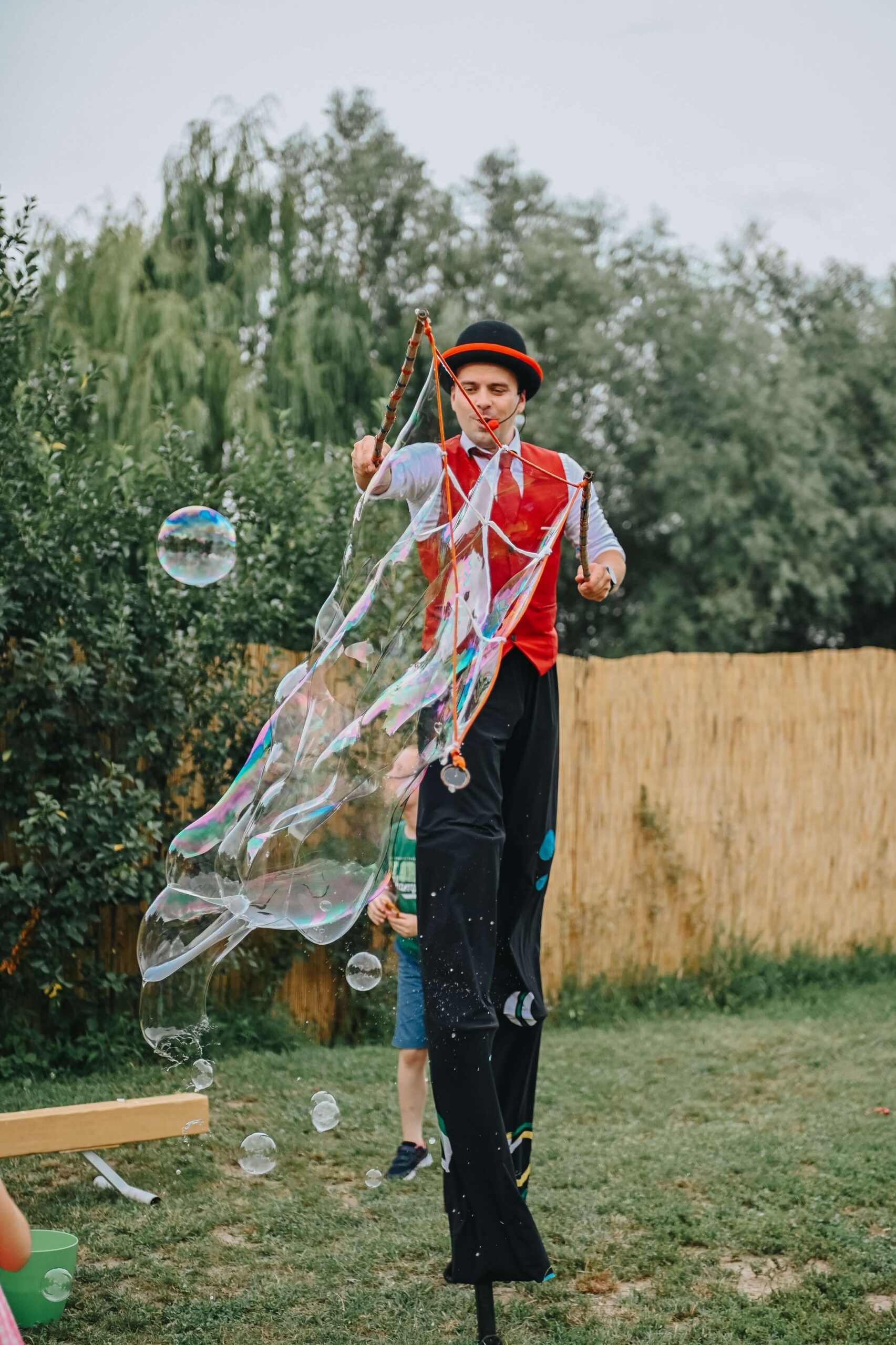 Ovaj scenski performans kombinuje impresivnu vizuelnu predstavu i interakciju sa publikom, stvarajući nezaboravnu atmosferu i autentične osmehe kod mališana i gostiju.